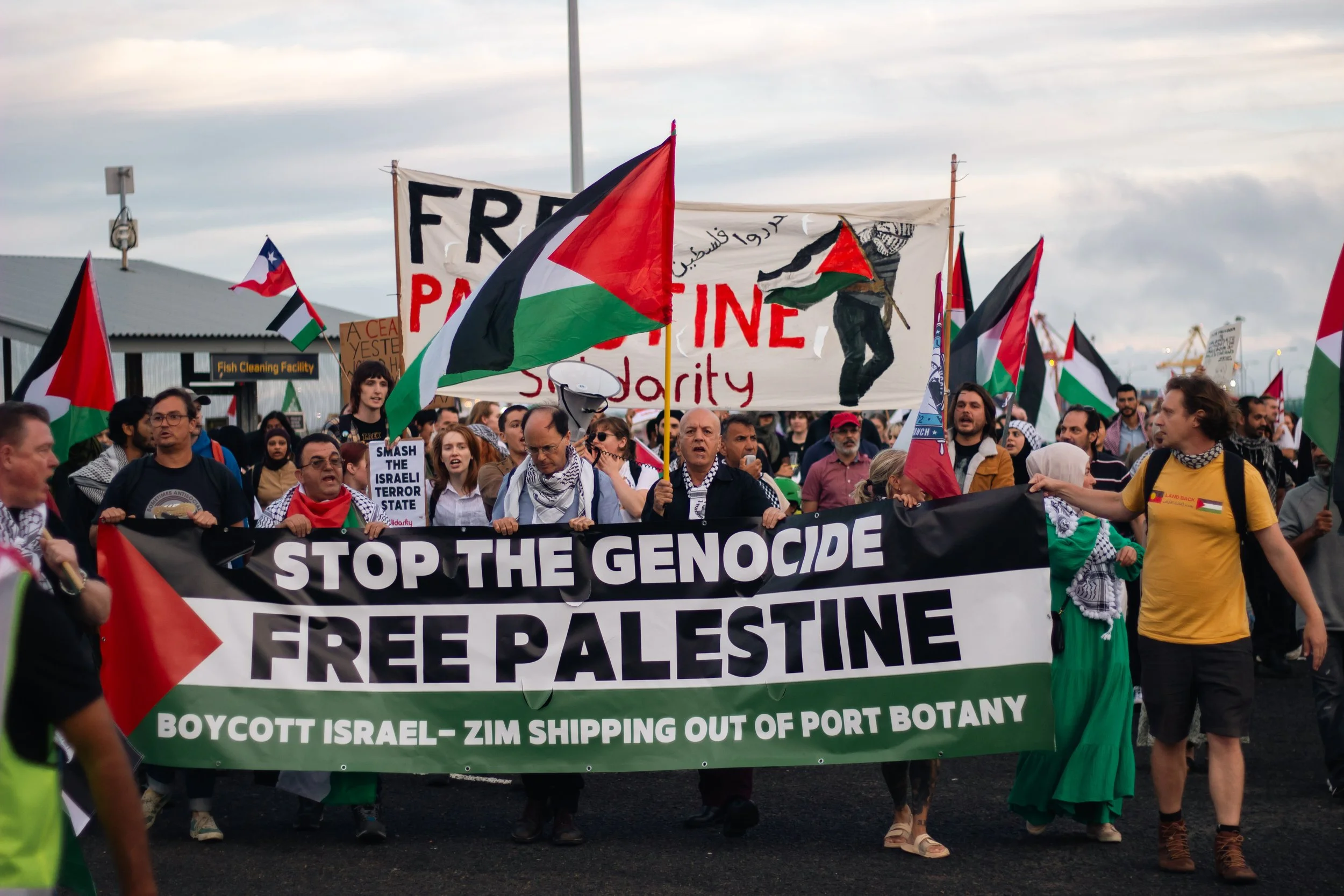 At Port Botany, for the last few weeks, activists have turned up in droves to protest and obstruct the activity of Zim, an Israeli shipping company known for transporting military equipment and aiding the Israeli war effort. By creating enough ruckus, they hope port authorities will suspend the contract with Zim.